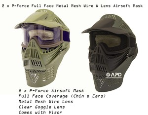 2 X P Force Full Face Metal Mesh Wire Goggle Airsoft Paintball